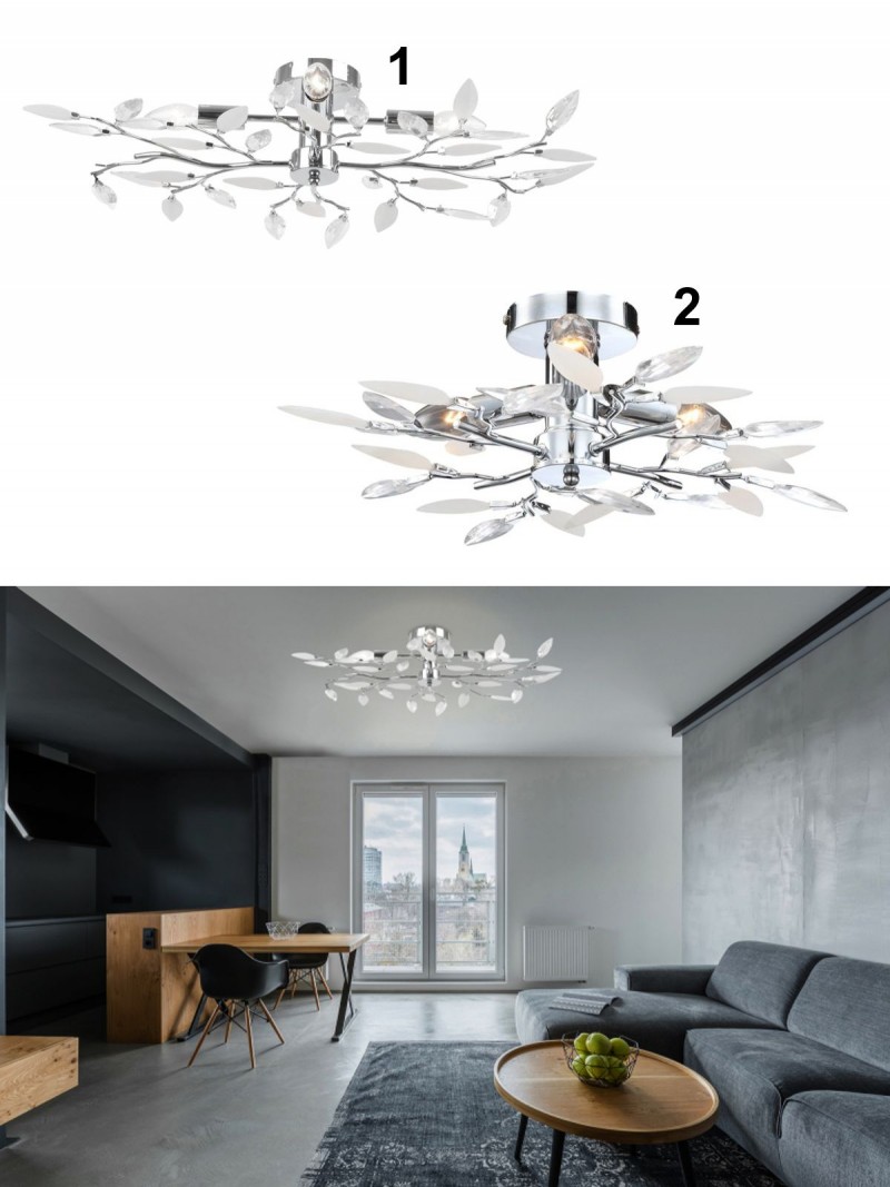 1. GL-63160-4 Stropní svítidlo, kov, chrom, akrylové křišťály průhledné a satinované, Ø62cm, V:15cm, bez žárovek 4xE14, max. 40W 230V. detail výrobku