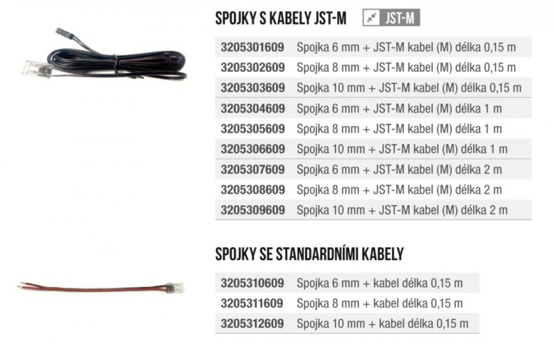 Konektor JST-M samec s kabelem a spojka 10mm, délka 0,15m, ks -