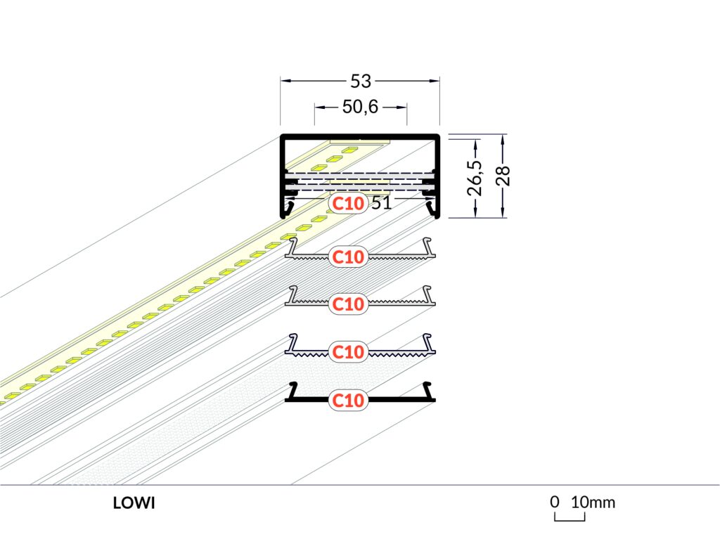 Kromě vysoce výkonných pásků je možné profil osadit také profesionální světelnou výzbrojí, kterou pro Vás na míru připravíme.