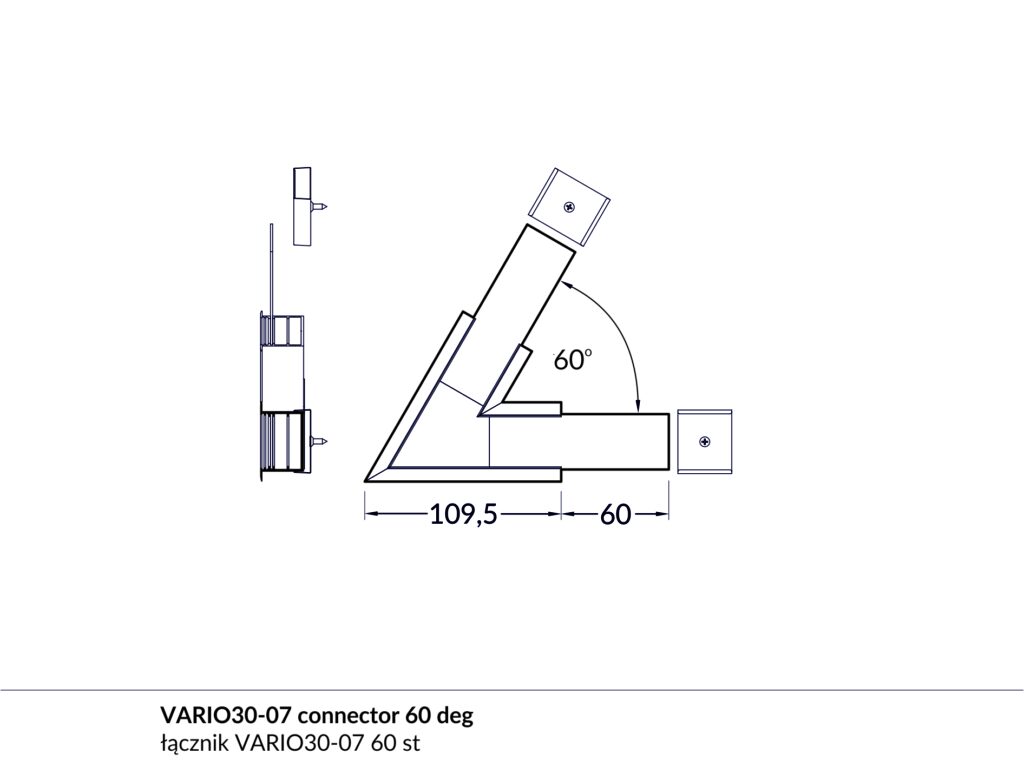 Spojka rohová WIRELI VARIO30-07 - 60° hliník anoda, ks - Hliníkové LED profily