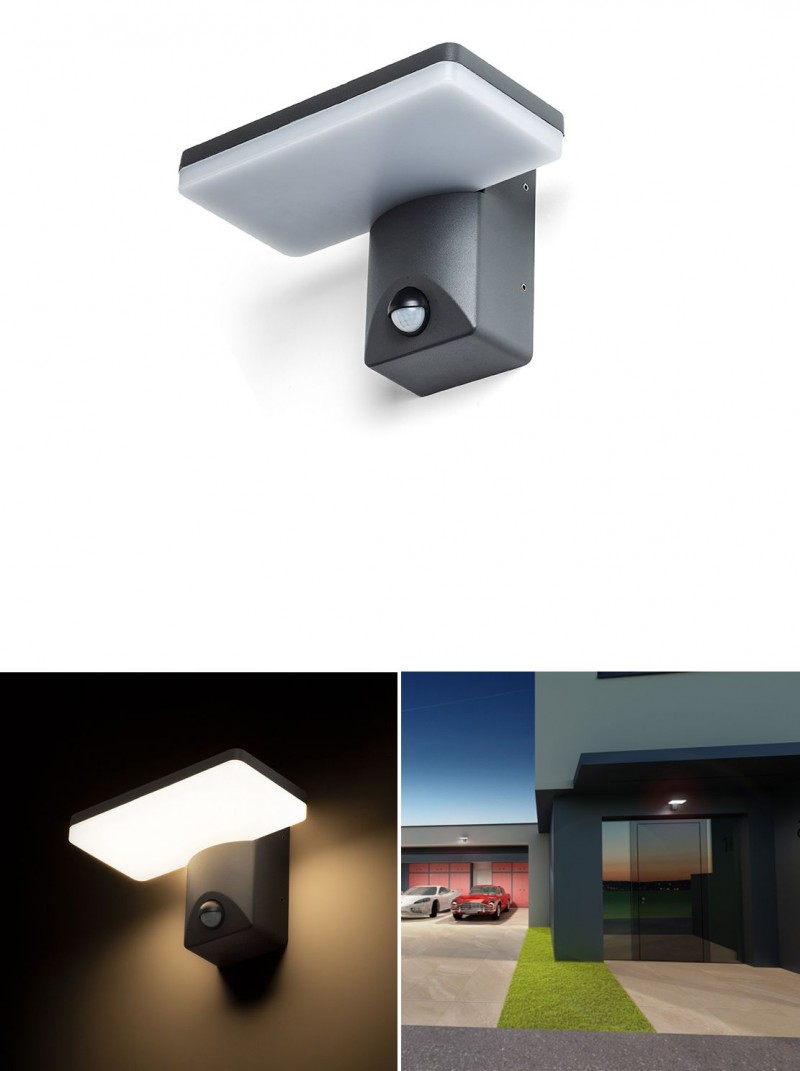 Ren-R13654 RINA PIR nástěnná antracitová 230V LED 12W IP65 3000K detail výrobku