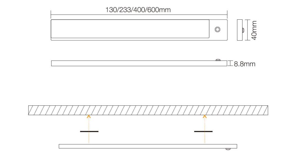 Možnost volby libovolné délky (233/400 mm) a barevné teploty světla (studená, neutrální, teplá).