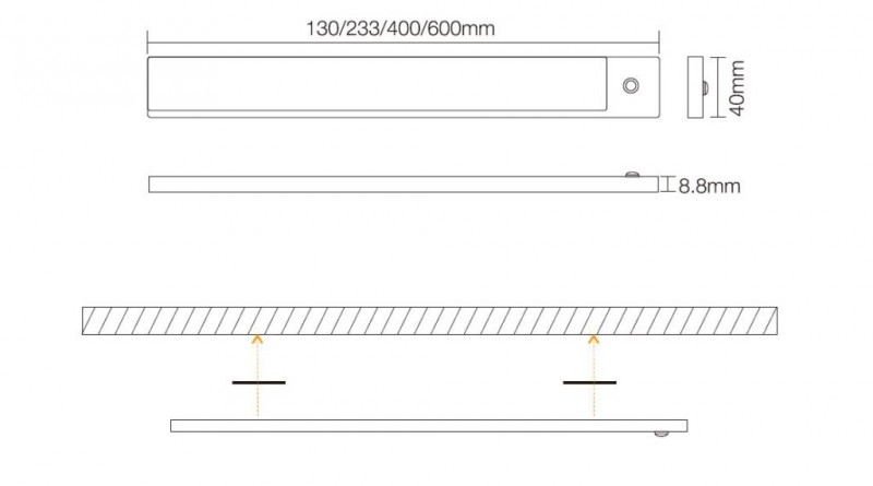 Možnost volby libovolné délky (233/400 mm) a barevné teploty světla (studená, neutrální, teplá).