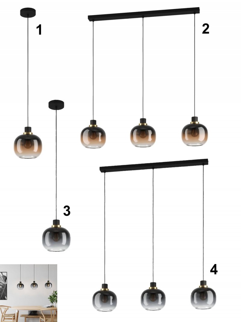 Moderní závěsná svítidla Oiella jsou vhodná do kuchyní a jídelen, ale také do obývacích pokojů. Základna je vyrobena z oceli v černé a mosazné barvě a stínidlo je skleněné ve tvaru koule. |