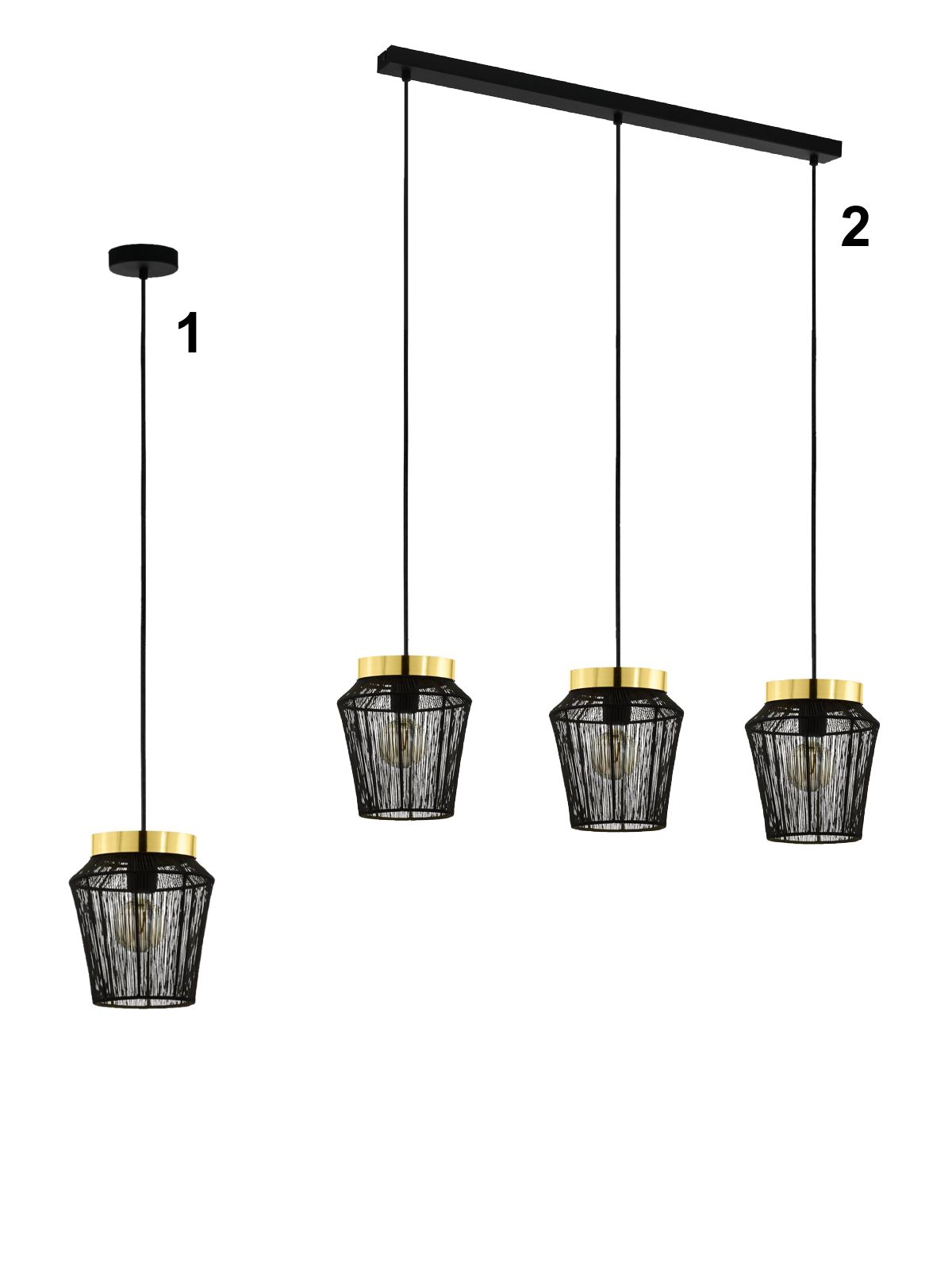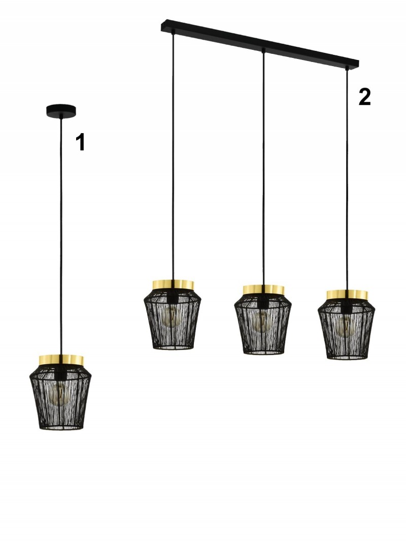 Moderní a stylové lustry jako skvělý doplňek do vašeho interiéru. Hodí se do obývacích pokojů, ale i do kuchyně nad jídelní stůl nebo kuchyňský ostrůvek. Jsou vyrobeny z oceli v černé barvě s mozasným prvkem a stínidlo je z oceli v černé a zlaté barvě. |