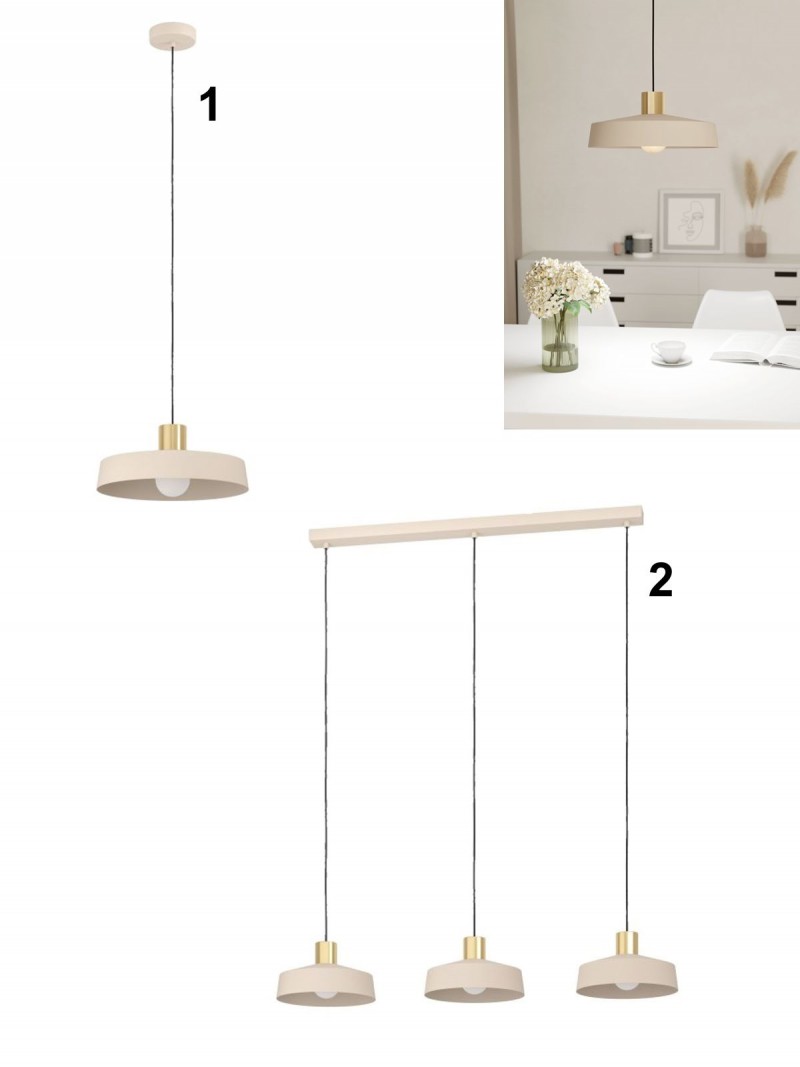 Moderní závěsná svítidla vyrobená z oceli v pískové barvě s prvky mosazné. Je možné je osadit chytrými LED žárovkami a pomocí aplikace v chytrém telefonu je stmívat a měnit teplotu a barvu svícení. Jsou vhodná nejen do kuchyní a jídelen, ale také do obývacích pokojů. |