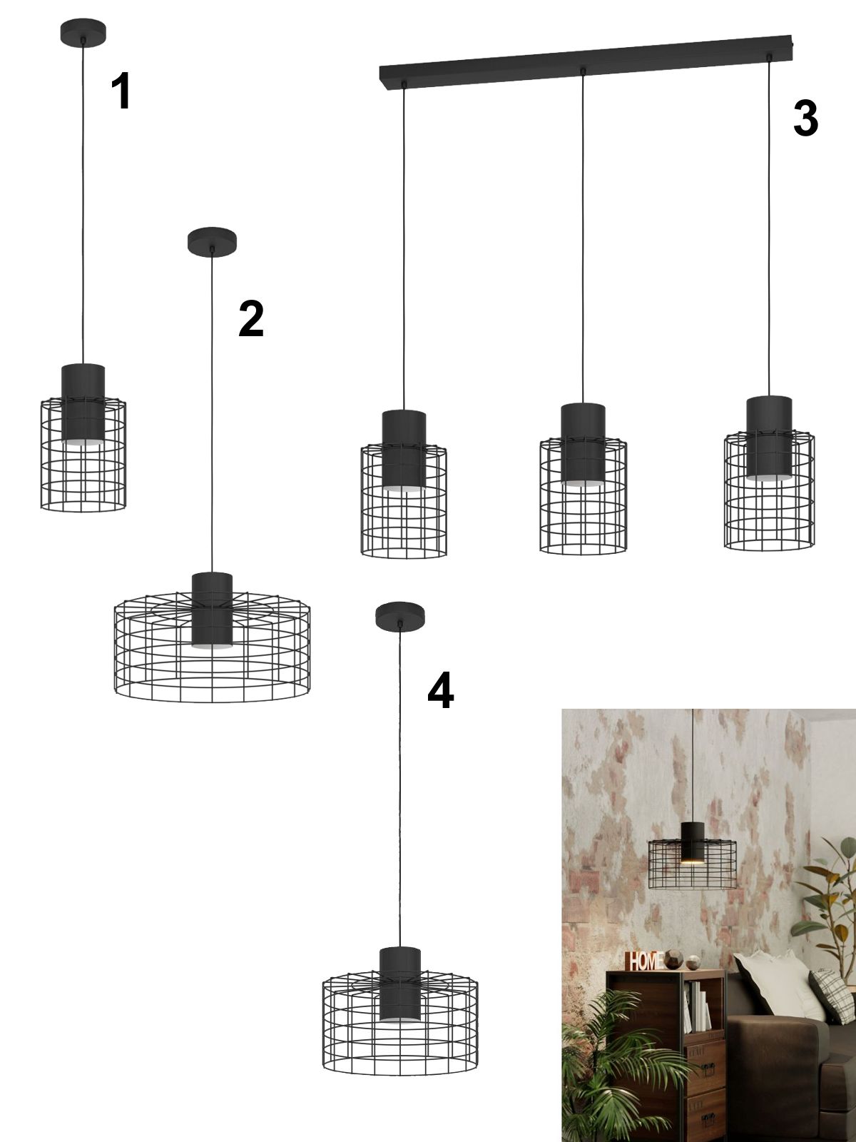 3. Egl-43626 HL/3 E27 SCHWARZ 'MILLIGAN' detail výrobku