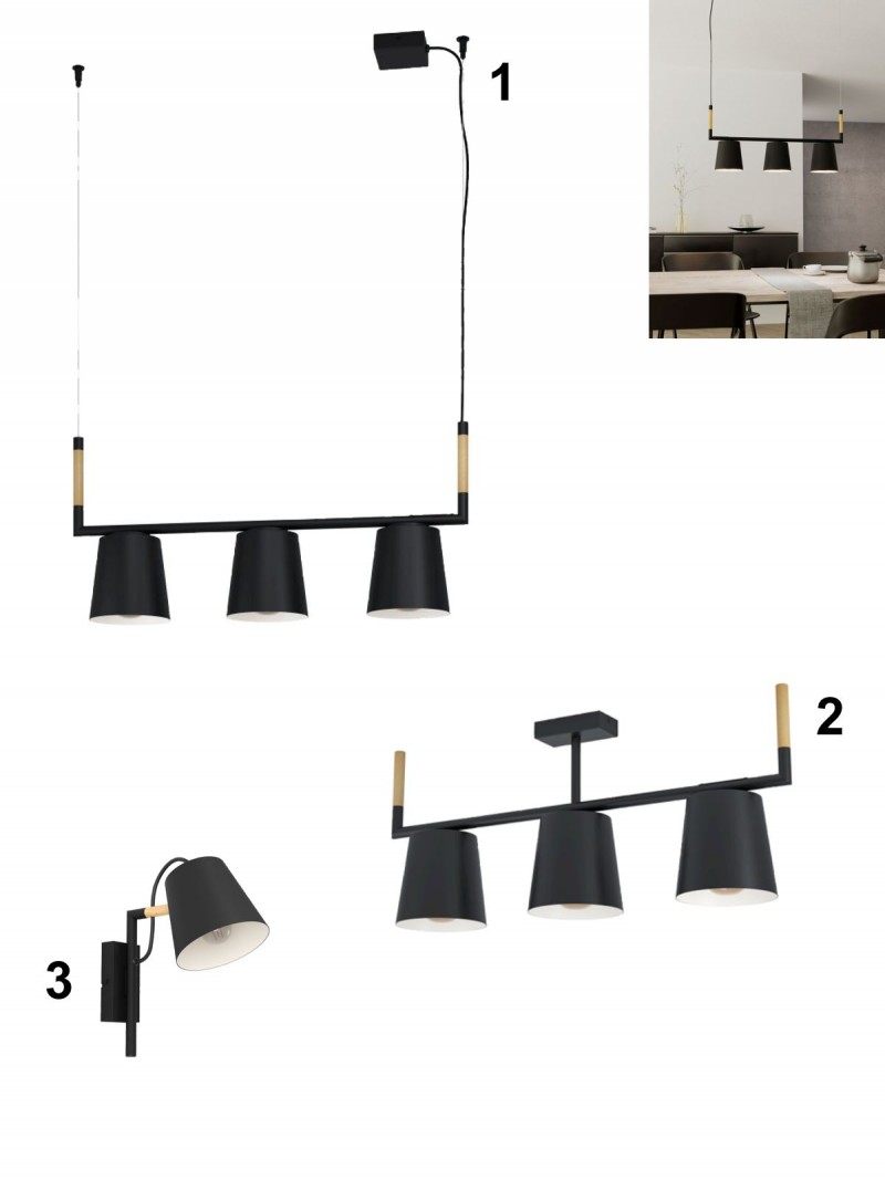 2. Egl-43611 DL/3 E27 SCHWARZ/HOLZ 'LACEY' detail výrobku