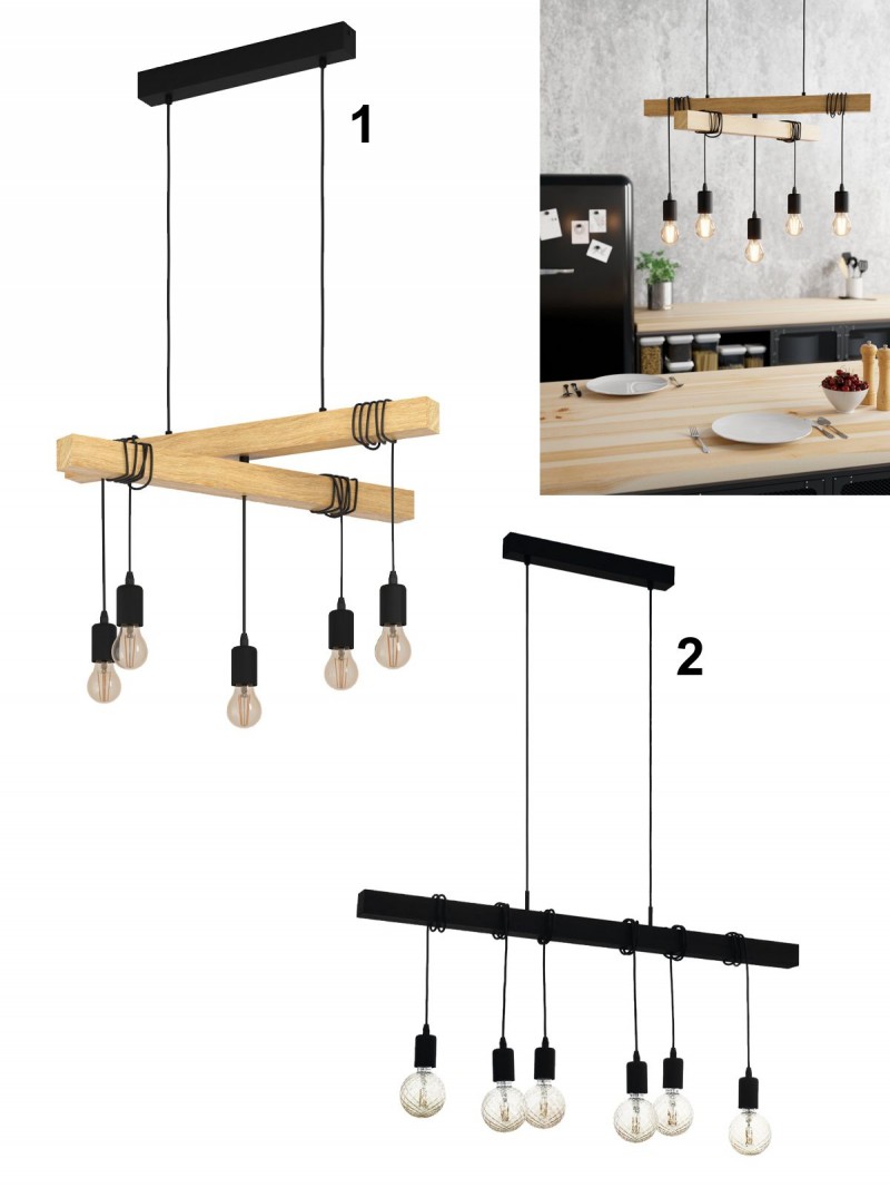 1. Egl-43629 HL/5 E27 SCHWARZ/HOLZ 'TOWNSHEND' detail výrobku