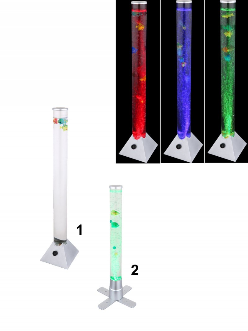2. GL-9017 Stojanové svítidlo, plast šedý a průhledný, černý PVC kabel, s vypínačem na kabelu, RGB změna barvy, včetně 3 rybiček a 2 kuliček, oběma vody 1,2L, Ø:6cm V:61cm, délka kabelu 1,8m, včetně 9xRGB LED 0.06W 230V, 4lm výstup detail výrobku