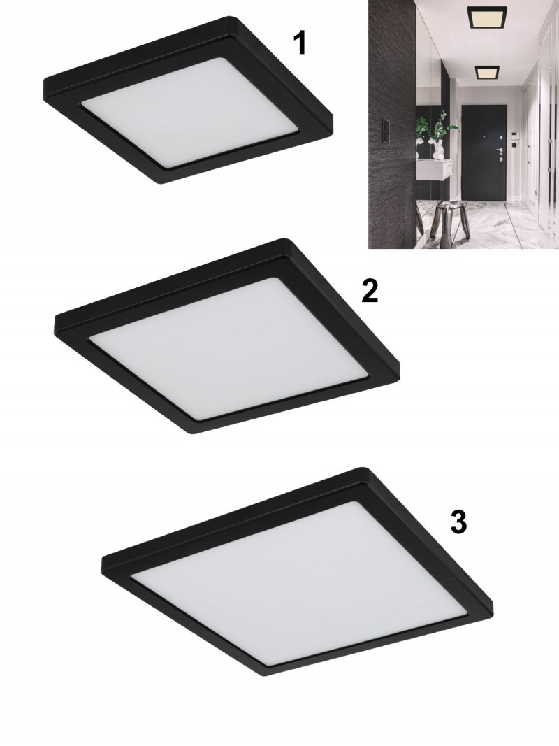 1. GL-12380-12B Stropní svítidlo, plast černý, plast bílý, změna barvy světla přepínačem, fixace barvy, Dx?xV: 17x17x1,5cm, včetně LED 12W 230V, 1050lm zdroj, 900lm výstup, změna barvy světla 3000/4000/6500K detail výrobku