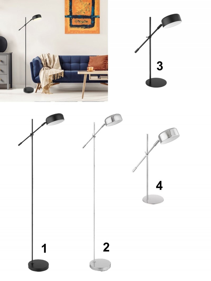 2. GL-24099SC Stojanové svítidlo, kov, chrom, plast satinovaný, nastavitelná jedním kloubem, kabel 1,8m, vypínač, Dx?xV: 48x20x139cm, bez žárovky 1xE14, max. 25W 230V detail výrobku
