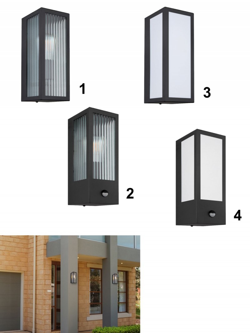 2. GL-31980S Venkovní svítidlo kov černý matný, čiré sklo, satinované, směr světla nahoru, včetně senzoru, IP44, sklo drážkované, ?xVxH:120x320x154mm, bez žárovky 1xE27 60W 230V detail výrobku